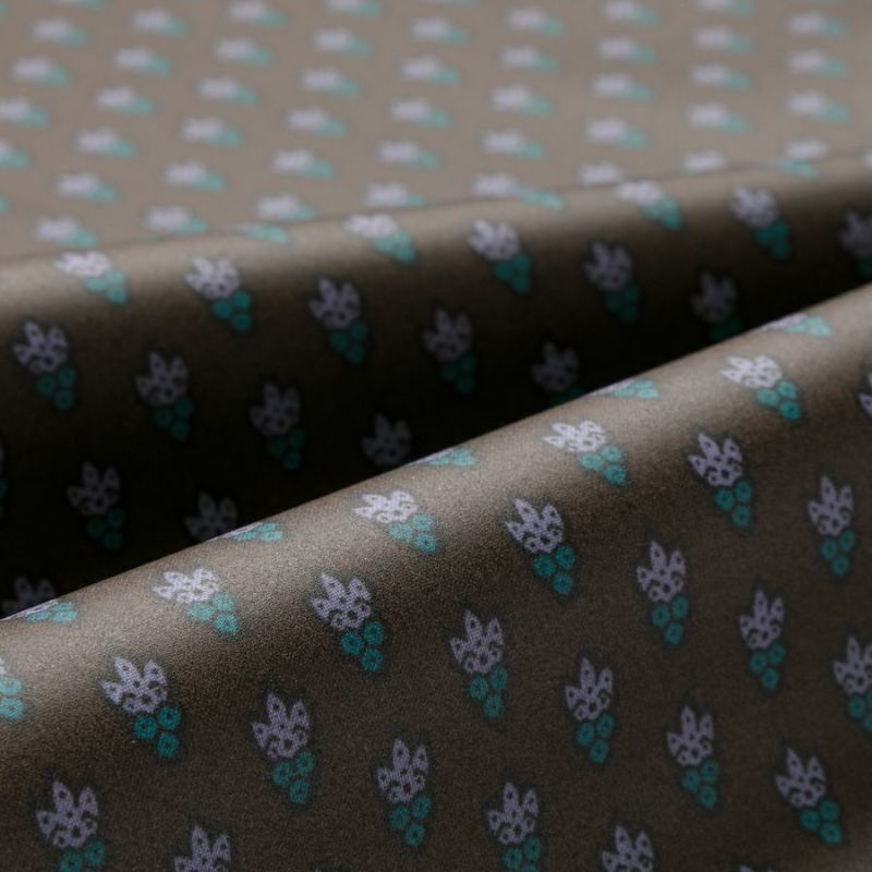 ソレイアードの上質なプリント生地の上につや消しラミネート加工をかけた生地です。