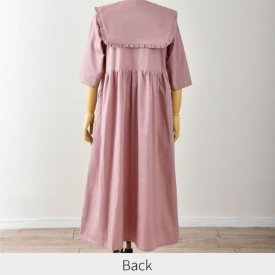 〈生地用尺〉 付け襟 生地幅110・140㎝共通…80㎝ ワンピ―スS-Mサイズ 生地幅110㎝…360㎝ 生地幅140㎝…300㎝ ワンピ―スL-LLサイズ 生地幅110㎝…370㎝ 生地幅140㎝…300㎝ 〇適した生地 肌触りの良い中薄タイプの生地(ブロード・ボイル・ローンなど) 〇材料(ワンピース用) 接着芯…縦130×横50㎝ スナップボタン…直径1.1㎝×10コ 〇用意するもの 印をつけるもの(チャコや鉛筆)・定規・はさみ(紙用・布用)・ミシン・ミシン糸・手縫い糸・しつけ糸・まち針・手縫い針・アイロン・あて布(いらない布)等