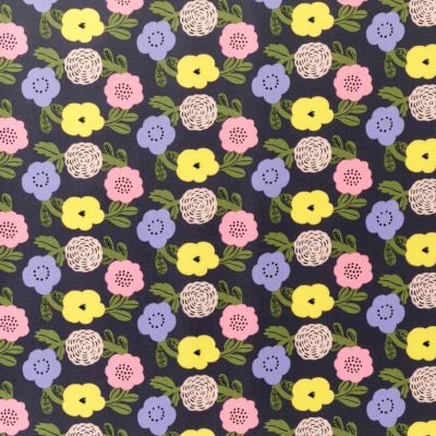 北欧テキスタイル kippis オックスラミネート生地 Kukkaseppeli/花冠 ネイビー