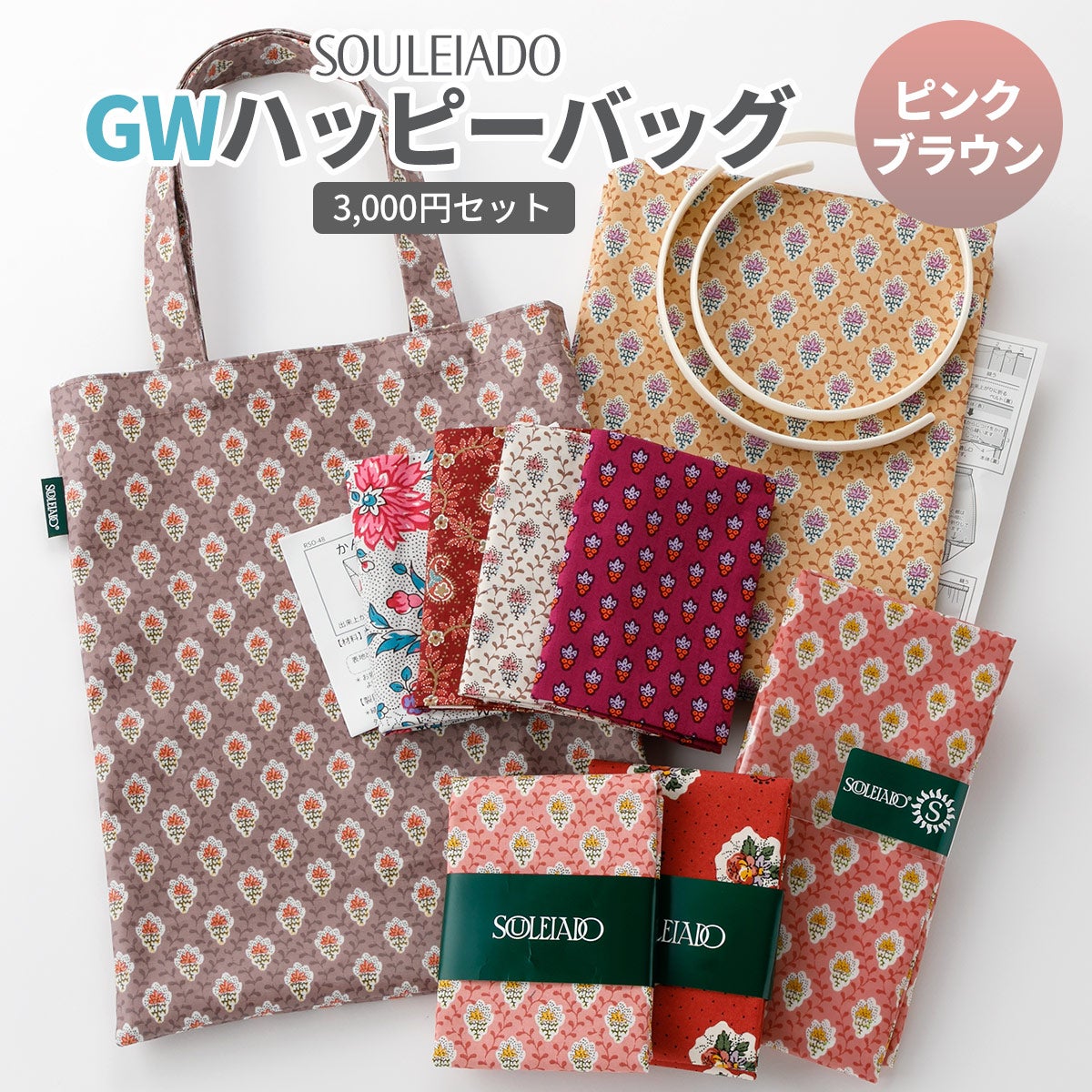 他の画像を見る ゴールデンウイーク特別企画 【数量限定福袋】SOULEIADO 2026 GWハッピーバッグフラットトート&生地・材料セット ピンクブラウン系 3000円セット ¥ 3,300 税込 カートに入れる お気に入りに登録する