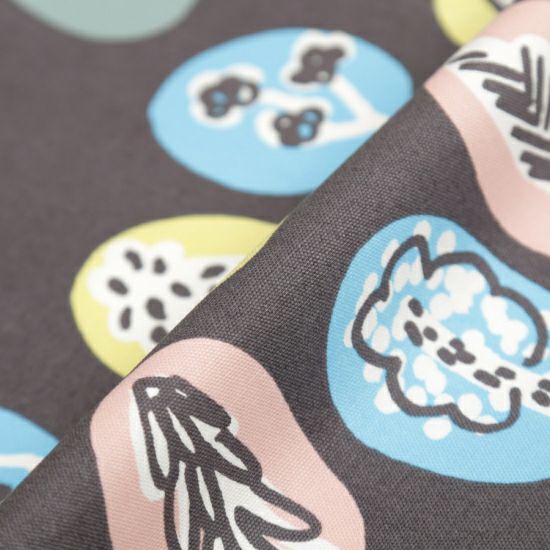 そんな林の木の一本一本を、楽しいモチーフとして表現。不規則なドット柄のようなデザインに仕上がっています。