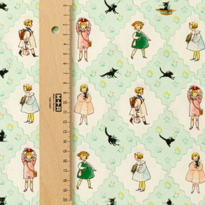 懐かしい絵本のような世界観 Kurahashi Rei くらはしれい 50cmカットクロス オックス生地 こねこのトトはおるすばん ダイヤ