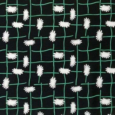 ガーデニングで使われるフェンスをモチーフに、有機的な花とグリッド模様を組み合わせた柄です。