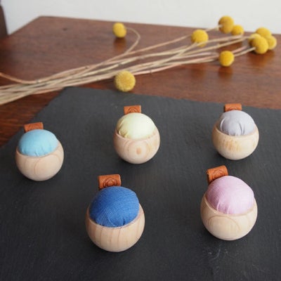ピンクッションの中には針を刺しやすく、針がさびにくい中綿が入っています。紐を通してアクセサリーとしても楽しめます。
