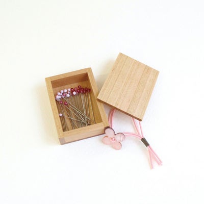 ○商品サイズ 待針…全長:35mm/ガラス玉:直径 2mm/針太さ:0.5mm 桜の木箱…幅:38mm/高さ:18mm/奥行:53mm