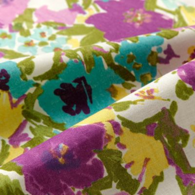 夏のハンドメイドにおすすめ 60ローン生地 カラフルフラワー パープル×カーキ