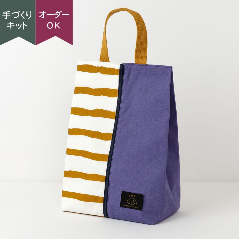 ファスナー開きがおしゃれなシューズバッグの材料セットです。