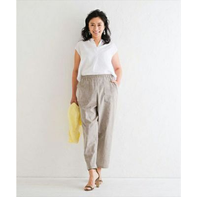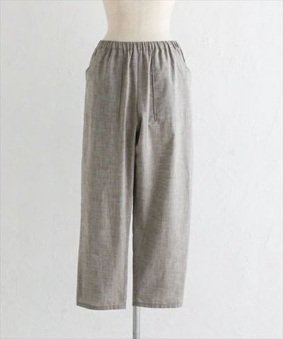 ●出来上がり寸法 パンツ丈 92cm 股上丈 29.5cm 股下丈 62.5cm ウエスト60〜67cm クエストゴム入れ前102.5cm ヒップゴム入れ前約113cm (モデル身長162cm)