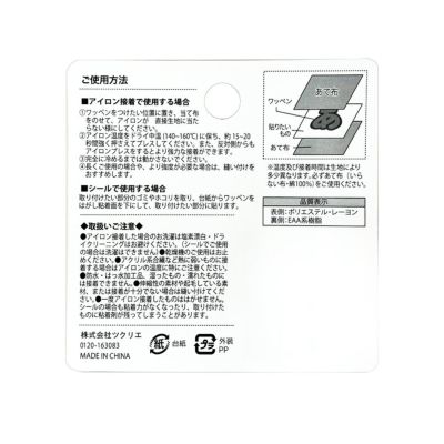 ※一度接着した物をはがした場合、アイロン接着・粘着力ともに効果が無くなる可能性があります。