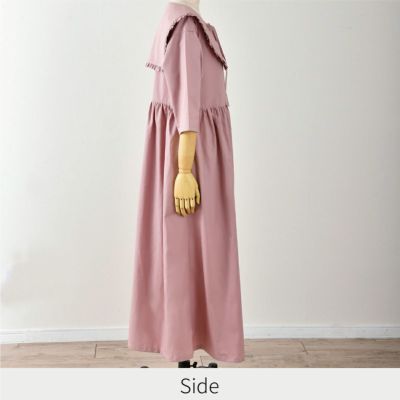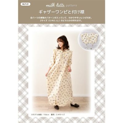 〈生地用尺〉 付け襟 生地幅110・140㎝共通…80㎝ ワンピ―スS-Mサイズ 生地幅110㎝…360㎝ 生地幅140㎝…300㎝ ワンピ―スL-LLサイズ 生地幅110㎝…370㎝ 生地幅140㎝…300㎝ 〇適した生地 肌触りの良い中薄タイプの生地(ブロード・ボイル・ローンなど) 〇材料(ワンピース用) 接着芯…縦130×横50㎝ スナップボタン…直径1.1㎝×10コ 〇用意するもの 印をつけるもの(チャコや鉛筆)・定規・はさみ(紙用・布用)・ミシン・ミシン糸・手縫い糸・しつけ糸・まち針・手縫い針・アイロン・あて布(いらない布)等