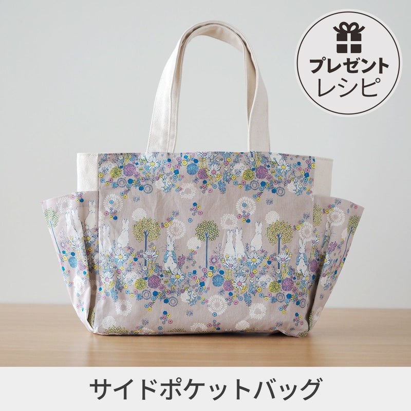 両サイドに大きめのポケットを付けて作るトートバッグです。