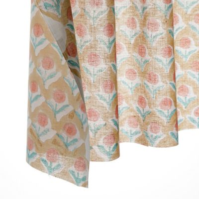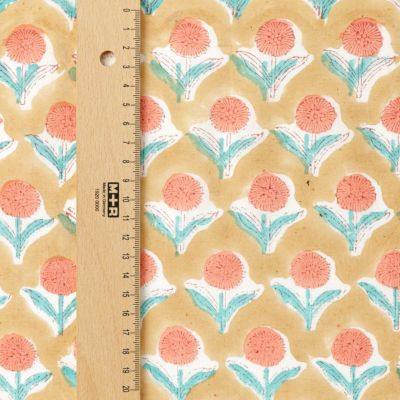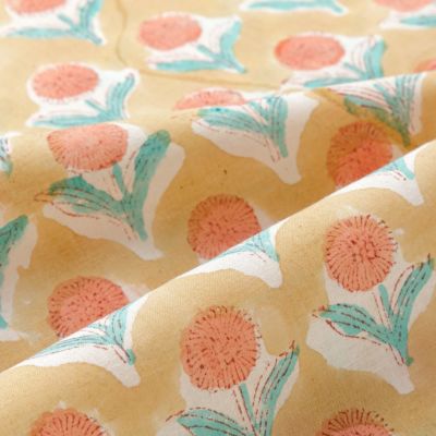 ブロックプリントはひとつひとつ職人により手作りされているため、柄やサイズに個体差があります。色の入り方や色味の違い、柄のズレ、インクのはね、滲みなどが温かみのある風合いを生み出し、一つ一つ表情の違う世界に一枚だけの生地に仕上がっています。