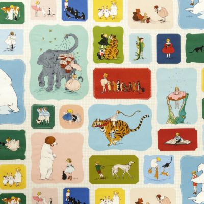 独特な色合いと世界観のレトロな海外絵本のようなイラスト達をテキスタイルにしたら、