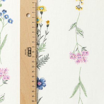 夏のハンドメイドにおすすめ 綿麻シーチング生地 草花 ホワイト