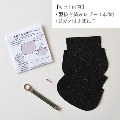〇セット内容…型抜き済みレザー(本体)2枚・Dカン付きばね口 〇用意するもの…両面テープ3mm幅・定規・ペンチまたはヤットコ・ミシンなど基本的な裁縫道具