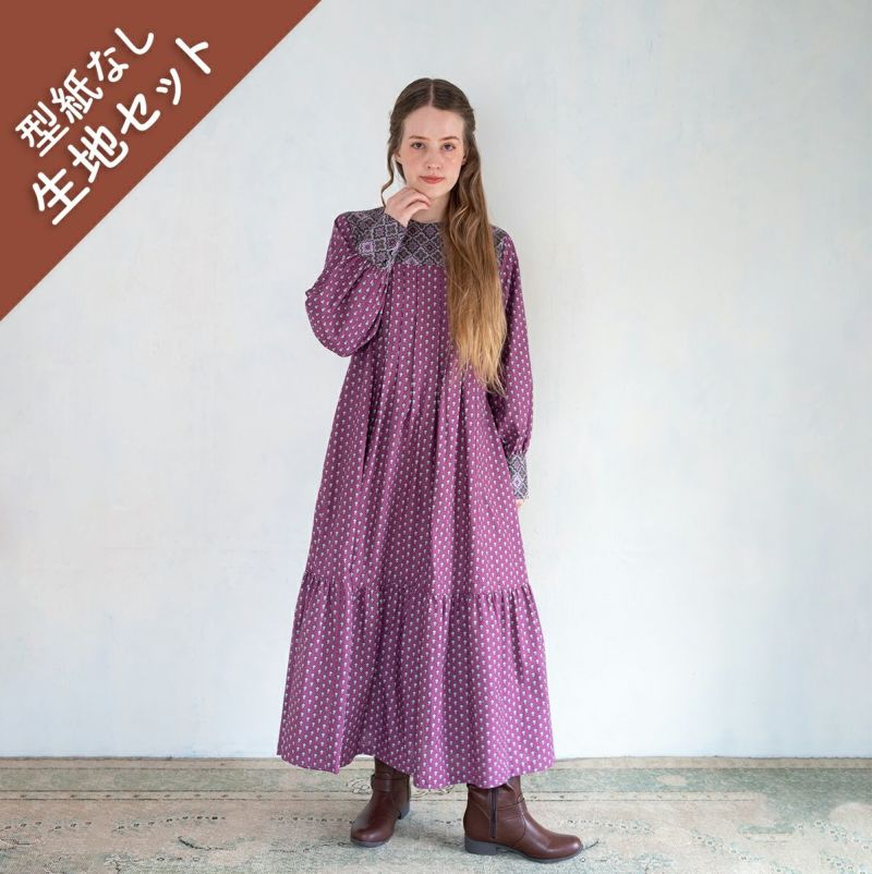 SOULEIADO×ニガム幸子 ソーイングキット <型紙無し>SOULEIADO ワンピース生地セット Neesha モーヴ
