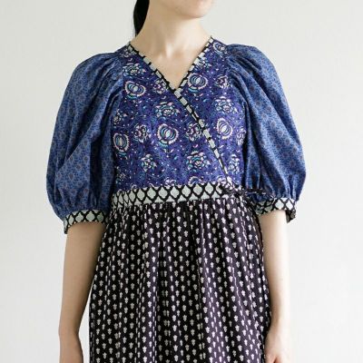 贅沢に4種類組み合わせた、ふんわりボリューム感のあるたっぷりギャザーのお袖が特徴のカシュクールワンピースキットです。
