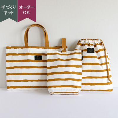 はっ水生地で作る入園入学3点セット ラフボーダーキャラメル 【オーダー対応可】