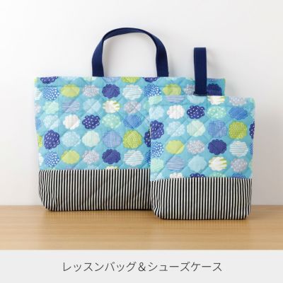 ソーイング初心者におススメ♪ 入園入学 kippis 2色使いのレッスンバッグキット 晴れときどき雲 シアン【オーダー対応可】 通園通学バッグ 絵本バッグ 手提げバッグ