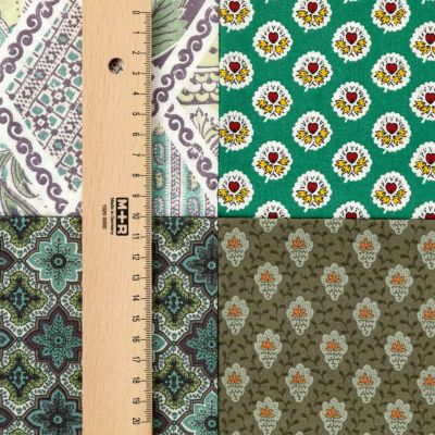 小物作りやパッチワークにぴったりなサイズの生地が4枚入り。