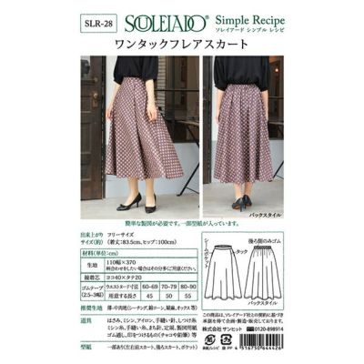 〇出来上がりサイズ・・フリーサイズ(着丈:83.5cm、ヒップ:100cm) 〇用紙サイズ・・・A5 〇型紙・・・一部あり(左右前スカート、後ろスカート、ポケット) 〇簡単な製図が必要です。