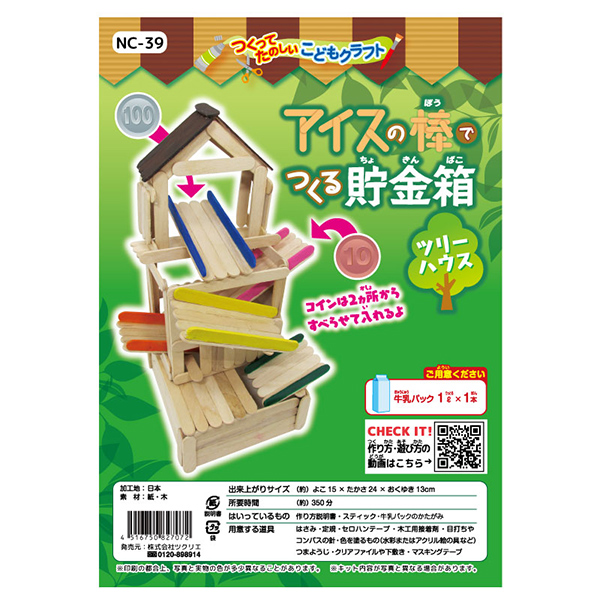 NC-19 アイスの棒で作る ツリーハウス貯金箱